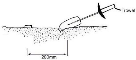 The ground should be prodded or broken-up over a width of excavation equal to the width of the anticipated threats at the site, or 15cm, whichever is greater.