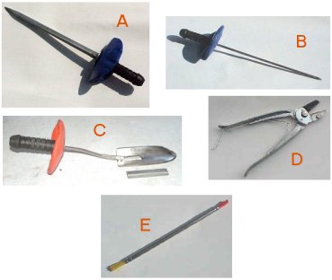 A: A pick-prod designed to be inserted a small way and twisted to break hard ground. A blade may be substituted for this as long as the blade is 30cm or longer.