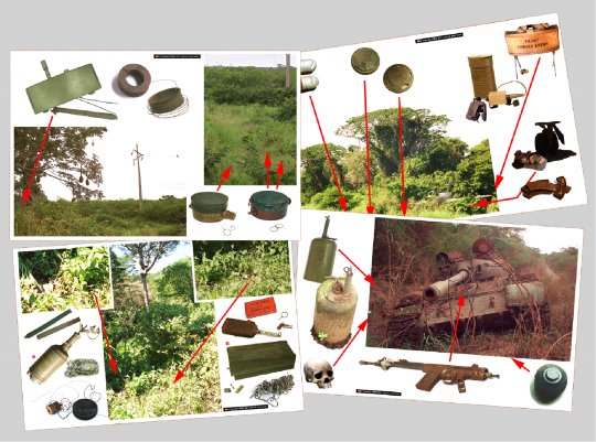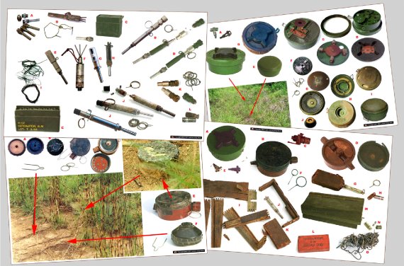 Only the pictures appropriate to use with a particular audience are used. Technical details, for example, would not be appropriate when teaching MRE to children, but would always be appropriate when training deminers, surveyors and people who have to deal with the devices found.