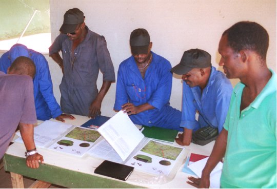 The large loose-leaf format was liked and there was enthusiasm for the use of photographs taken in-situ. The inclusion of a generic mine action course and teaching notes on the reverse of each page was also appreciated. The trainers particularly liked the fact that the text was in Portuguese and English—so recognising their own language and incidentally helping them to learn an English demining vocabulary. Unexpectedly, field surveyors and deminers use the resource for reference—and asked for some technical detail to be expanded.