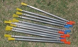 stainless steel pipe with bristles set into it at both ends using epoxy resin. The resin is locked in place by rolling depressions into the pipe using a pipe-cutting tool with a broad, blunt wheel.