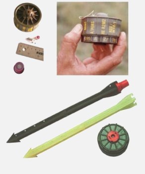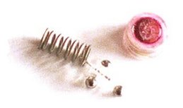 shows the metal content, comprising three ball bearings, a coil-spring,